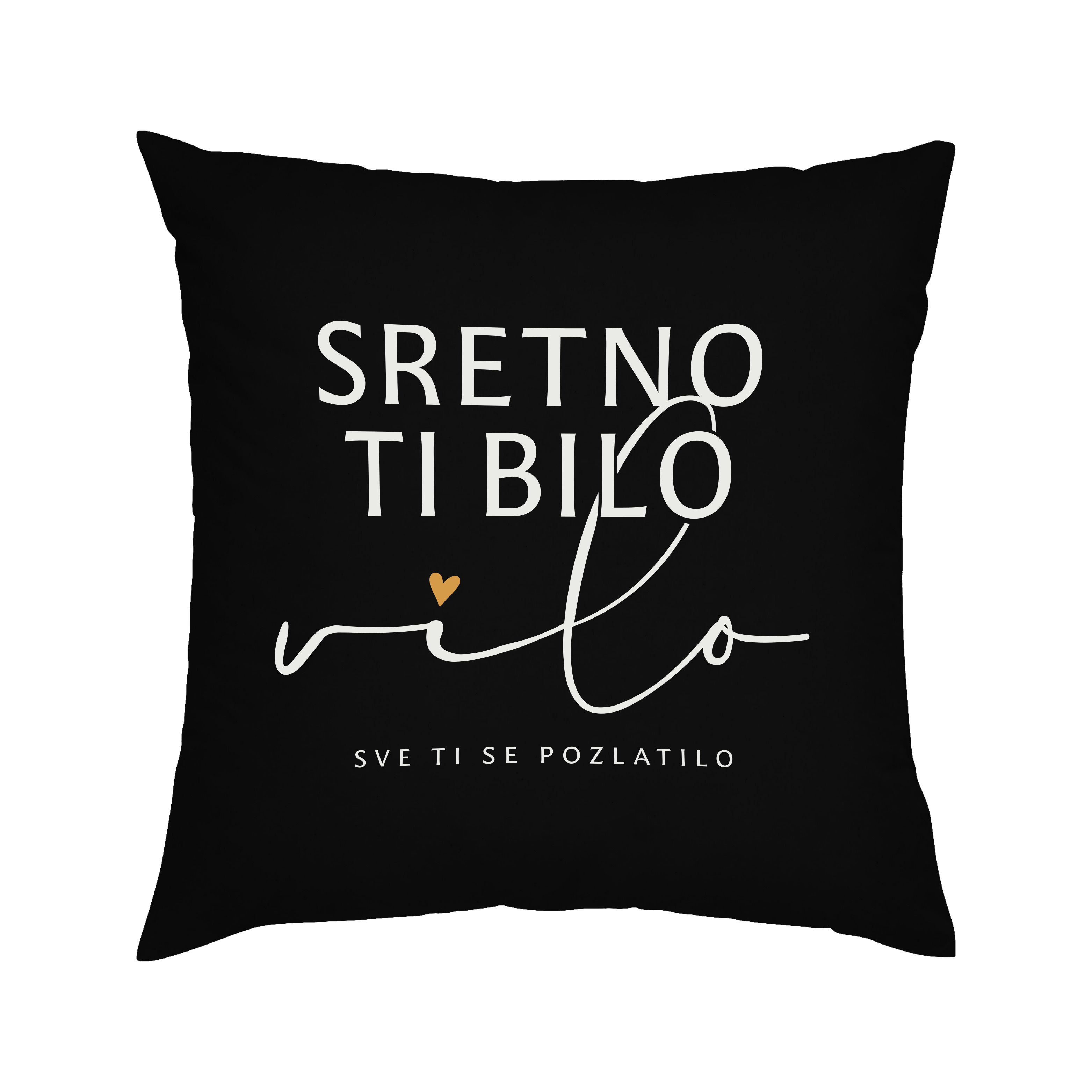 Jastuk "Sretno ti bilo vilo, sve ti se pozlatilo" (crni)